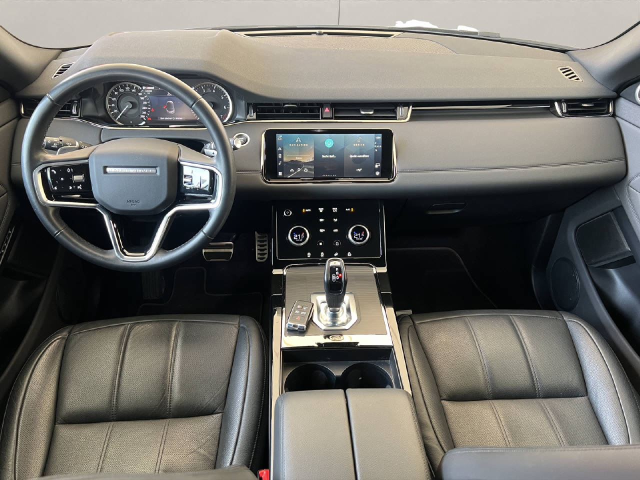 Free Service 4 Jahre/ 100'000 km ab 1. Inv.-S.bis 01.03.2026, Pack R-Dynamic Exterieur, Pack Online, Pack Anschluss, Stop + Start System, Aussenspiegel el.verstell-heiz-anklappbar/abblendbar, Geschwindigkeitsregler und - begrenzer, Regensensor, Heckklappe elektrisch, Dynamischer Blinker vorne und hinten, Leuchtweitenregulierung, Einstiegsleisten verchromt, Leichtmetallfelgen 20" 5-Doppelspeichen Silver, Elektronische Parkbremse, Ottopartikelfilter, Airbag Fahrer und Beifahrerseite, Knieairbag Fahrer, Seitenairbag Fahrer und Beifahrerseite, Windowbags vorne + hinten, Fussgänger-Airbag, Kollisionswarnsystem, Fernlichtassistent, Toter-Winkel-Spurassistent, Toter-Winkel-Warnsystem/ Türöffnung, Spurhalteassistent LDW, Verkehrszeichenerkennung & Geschwindigkeitsbegrenzer, Müdigkeitserkennung, Isofix-Kindersitzbefestigung, Park Distance Control vorne + hinten, Rückfahrkamera, Reifendruck-Sensoren TPMS, LED-Scheinwerfer mit LED Signatur, ABS Antiblockiersystem, EBD Elektronischer Bremskraftverteiler, Bremsassistent EBA, HDC Hill Descent Control/ Bergabfahrkontrolle, TCS Elektronische Traktionskontrolle, Terrain Response 2, All Terrain Progress Control, DSC Dynamische Stabilitäts-Control, Zwei Zonen-Klimaautomatik, Schaltwippen am Lenkrad, Multifunktions-Lederlenkrad, Dachhimmel Morzine Ebony, Vordersitze 12-fach elektr. verstellbar/ Memory für Fahrer, Rücksitzbank im Verhältnis 40/20/40, Innenspiegel automatisch abblendbar, Pedale in Edelstahl, Virtuelle Instrumententafel/ TFT-Bildschirm 12.3", Digitaler Radioempfang DAB+, Touch Pro Duo, Navigation Pivi Pro, InControl Remote, Apple Car Play, Android Auto, Bluetooth-System, Keine Gewähr auf die Angaben der Serienausstattungen