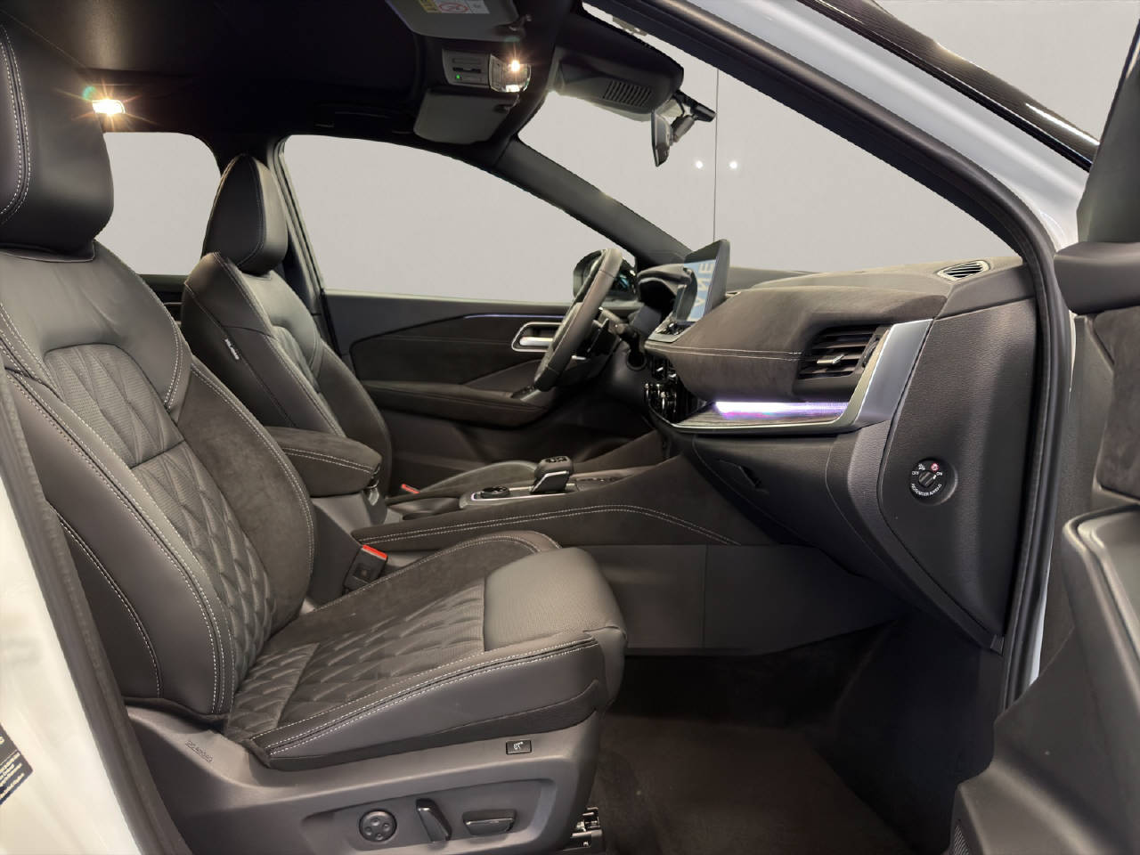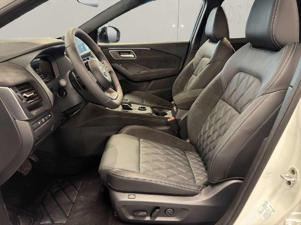Airbag Fahrer und Beifahrerseite, Sitzheizung vorne, Beifahrersitz elektrisch verstellbar, Fahrersitz elektrisch verstellbar mit Memory, Elektrische Fensterheber vorne + hinten, Dachreling, Heizbare Frontscheibe, ESP Elektronisches Stabilitätsprogramm, Alarmanlage, Lederlenkrad mit Lederschaltknauf, Scheibenwischer mit Regensensor, Aussenspiegel elektrisch verstellbar/ heizbar und, Elektr. Lendenwirbelstützen vorne, Rücksitze geteilt umklappbar 60/40, Audiofernbedienung am Lenkrad, Isofix-Kindersitzbefestigung, Ambientebeleuchtung, Ledersitze, Lenkrad beheizbar, Sound System Bose, Intelligent Key-System, Servolenkung elektrisch, Rückfahrkamera, Vorhangairbags, Seitenairbags vorne, Leichtmetallfelgen 20", ABS/ EBD, Dachhimmel schwarz, Mittelarmlehne hinten/ 2 Getränkehalter, Vordersitze höhenverstellbar, HSA Berganfahrassistent, Abgedunkelte Scheiben ab B-Säule, Panorama-Glasdach, Head-Up Display, Adaptive Geschwindigkeitsregelung ACC, Fernlichtassistent, Spurverlassenswarnung, Bluetooth Interface/ Schnittstelle, Klimaautomatik, Elektronische Parkbremse, Einparkhilfe vorne und hinten, Stop + Start System, LED Tagfahrlicht, LED Rückleuchten, Totwinkel-Assistent, Schaltwippen am Lenkrad, Details siehe gültige Preisliste des Importeurs, Keine Gewähr auf die Angaben der Serienausstattung, Aktiver Spurhalteassistent LKAS, WiFi On Board (Online), Vordersitze mit Massagefunktion, Kollisionswarnsystem, DAB+ Digital Audio Broadcast, 360° Kamera, Heckklappe elektrisch mit Freihandfunktion, Notbrems-Assistent, Verkehrsschild-Erkennungssystem, TFT-Display gross, Wireless Charging für mobile Geräte, Connect, Apple Car Play/ Android Auto, Matrix LED-Scheinwerfer, Rückfahr-Querverkehrswarner, Müdigkeitserkennung, Pro Pilot, Navigation Nissan Connect, USB-C Anschluss