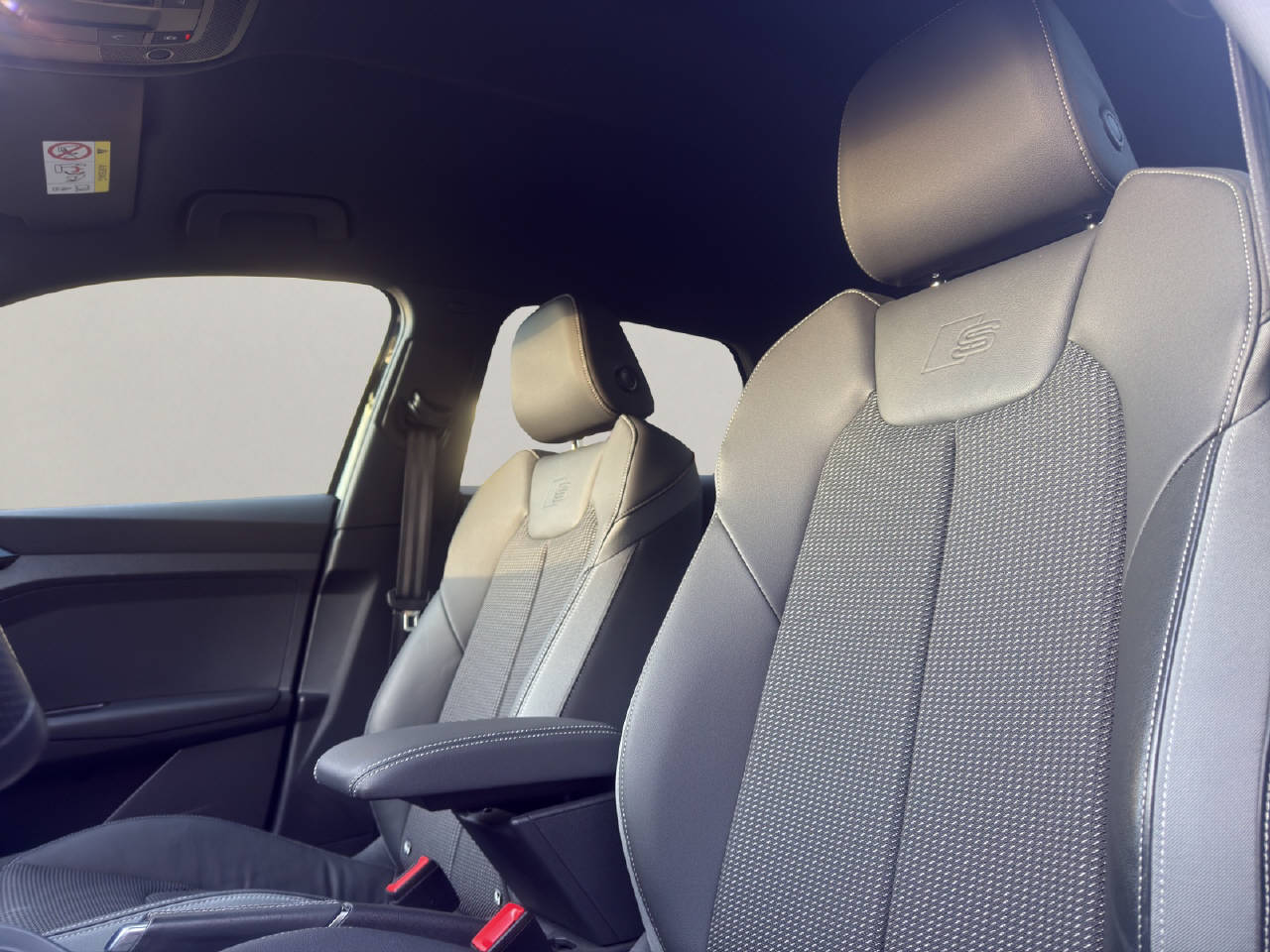 Aussenspiegel elektrisch verstellbar und heizbar, Airbag Fahrer und Beifahrerseite, Seitenairbag Fahrer und Beifahrerseite, ESP/ ASR/ EDS/ ABS mit EBV, Seitliches Kopfairbagsystem SIDEGUARD, Nichtraucher- Ausführung, Elektrische Fensterheber vorne + hinten, Aussenspiegel in Wagenfarbe, Servolenkung, Wärmeschutzverglasung, Radioempfang digital DAB, Audi hill hold assist (Berganfahrassistent), Frontscheibe mit grauem Colorstreifen, Rücksitzlehne umklappbar, Fussmatten vorn und hinten, Leichtmetallräder 17" 5-Arm Design, Reifendruck-Kontrollanzeige, Licht- und Regensensor, Audi Lane Assist (Spurverlassenswarnung), Klimaanlage manuell, Bluetooth Schnittstelle, Deaktivierung Beifahrerairbag, Stop + Start System, Audi pre sense front, MMI Radio plus, Multifunktions-Lederlenkrad 3-Speichen, Pack Infotainment, Ottopartikelfilter, Keine Gewähr auf die Angaben der Serienausstattung