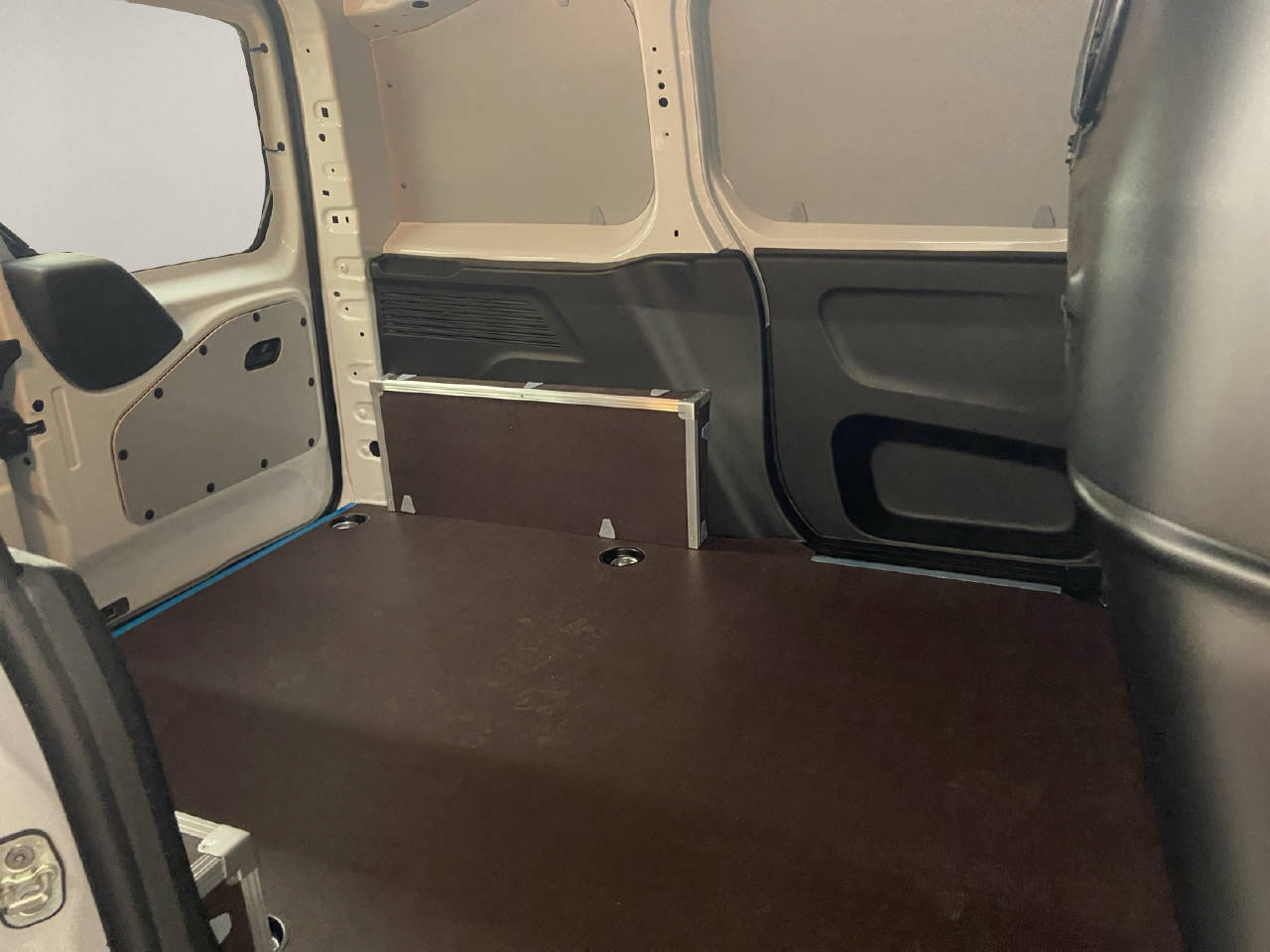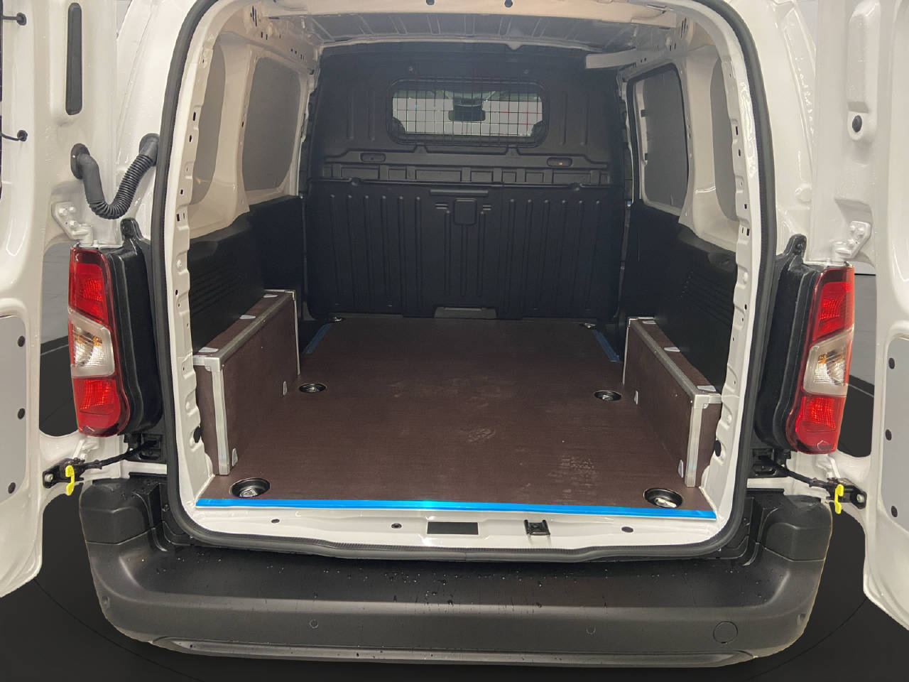 All-In-One Radio 10", Laderaum-Trennwand mit Fenster, Heckflügeltüren verglast 180°, Holzboden und Seitenschutz im Laderaum