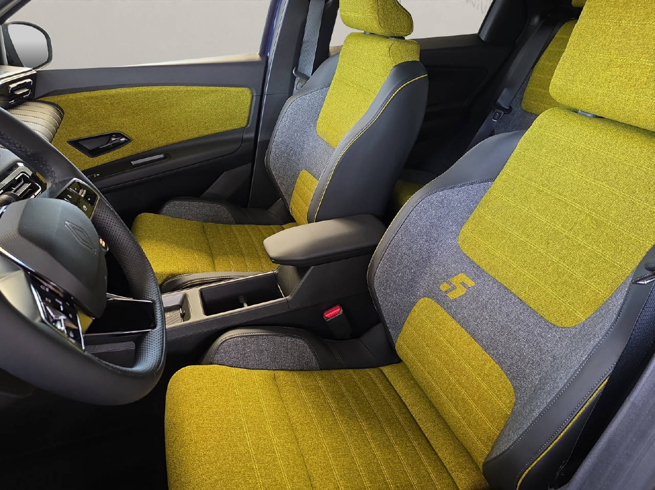 NIGHT BLUE / Dach STARRY BLACK / Night Blue / Dach Noir Étoi, Sitzbezug Stoff "iconic 5 gelb" recylet, Innenharmonie Grau, Zierleiste Fensterrahmen Warm Titanium, Pack Advanced Driving Assist