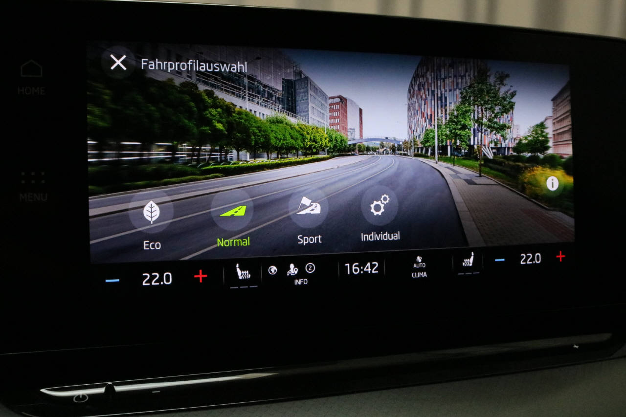 Pack Navi, Pack Sport Basic 2, Pack mySkoda Premium, Heckklappe elektrisch mit Freihandfunktion, SunSet (getönte Scheiben), Metallic-/ Perleffekt-Lackierung, Sitzbezüge in Stoff/ Leder, Ladeboden variabel/ Kofferraum