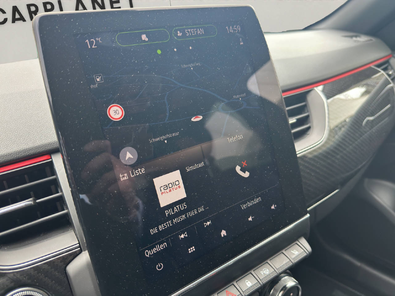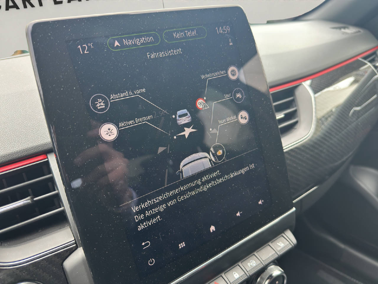 Renault Chipkarte Keyless-Drive Hands-free, Stop + Start System, Aussenspiegel elektrisch einklappbar, Aussenspiegel elektrisch verstellbar und heizbar, Licht- und Regensensor, Dunkle Verglasung hinten, Leichtmetallfelgen 18", Reifenreparatur-Kit, Automatische Parkbremse, Servolenkung, Ottopartikelfilter, Airbag Fahrer und Beifahrerseite, Seitenairbags vorne, Adaptiver Fernlichtassistent, Toter-Winkel-Assistent, Spurhaltewarner, Spurhalteassistent LDW, Automatische Notbremsung, Querverkehrswarnassistent, Abstandswarnung, Adaptiver Tempomat ACC, Parkassistent, Einparkhilfe vorne und hinten, Einparkhilfe 360°, Rückfahrkamera, Reifendruck-Kontrollsystem RDK, Notruf, LED-Scheinwerfer, ABS und EBV Elektr. Bremskraftverteilung, ESP/ ASR/ CSV, Klimaanlage automatisch inkl. Pollenfilter, Lederlenkrad, Sitzbezüge in Leder schwarz, Sitzheizung vorne, Sitzbank hinten 1/3 - 2/3 umklappbar, Elektrisch verstellbare Vordersitze, Automatisch abblendbarer Innenspiegel, Ambientebeleuchtung, Digitale Instrumentierung, Navigationssystem mit Europakarte, Apple Car Play/ Android Auto, Wireless Charging für mobile Geräte, Multimediasystem 9.3", Keine Gewähr auf die Angaben der Serienausstattungen