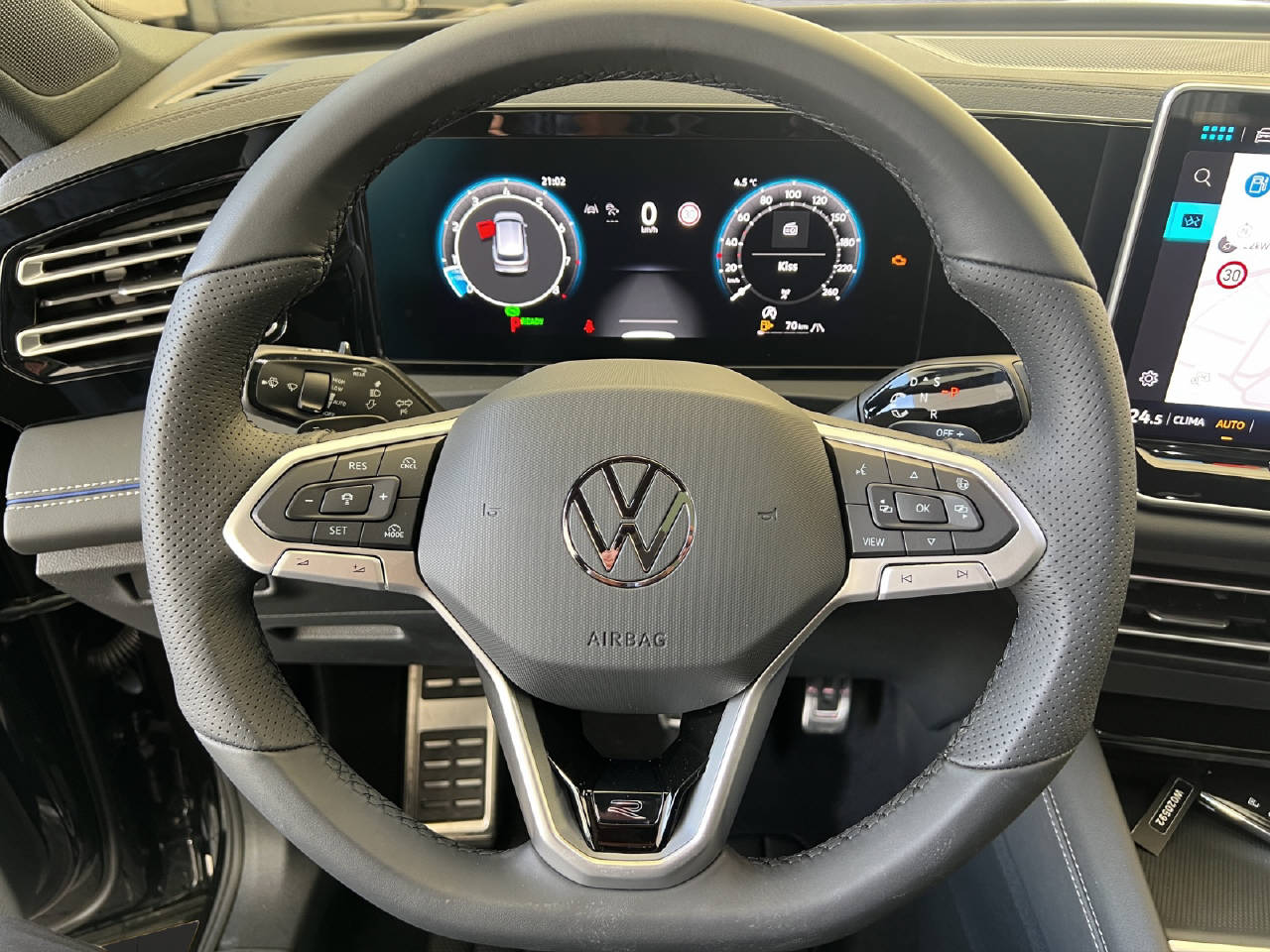 Schlüsselloses Startsystem Keyless Start, Zentralverriegelung mit Funkfernbedienung, Stop + Start System mit Brems-Energie-Rückgewinnung, Elektrische Fensterheber vorne + hinten, Aussenspiegel elektrisch anklappbar mit Memory, Aussenspiegel elektrisch verstellbar und heizbar, Regensensor, LED Heckleuchten, Dachreling silber eloxiert, Leichtmetallräder 19" Coventry, Tire mobility system, Elektronische Parkbremse, Ottopartikelfilter, Airbag Fahrer und Beifahrerseite, Deaktivierung Beifahrerairbag, Kopfairbag vorne und hinten inkl. Seitenairbag vorne, Müdigkeitserkennung, Spurhalteassistent Lane Assist, Spurwechselassistent Side Assist, Park Assist Plus, Verkehrszeichenerkennung, Kindersitz-Vorbereitung Isofix, Automatische Distanzregelung ACC, Rückfahrkamera, Multifunkitonskamera, Reifenkontrollanzeige RKA, ParkPilot vorne + hinten, LED-Plus-Scheinwerfer, Fernlichtregulierung Light Assist, Elektronische Differentialsperre XDS, ESP/ EDS/ ASR/ ABS/ BA, Auto-Hold-Funktion, Klimaanlage Climatronic 3-Zonen, Multifunktions-Sportlenkrad 3-Speichen, Sportsitze vorne, Höhenverstellbare Vordersitze, Lendenwirbelstützen Vordersitze, Rücksitzbank und -lehne asymmetrisch geteilt umklappbar, Lenksäule mit Höhen- und Längseinstellung, Innenspiegel automatisch abblendbar, Mittelarmlehne vorne, Massagefunktion vorne, Textilfussmatten vorne + hinten, Digitaler Radioempfang DAB+, USB-C Anschluss, Digital Cockpit Pro, Security & Service/ Notruf, Wireless App Connect, We Connect, Details siehe gültige Preisliste des Importeurs, Keine Gewähr auf die Angaben der Serienausstattungen