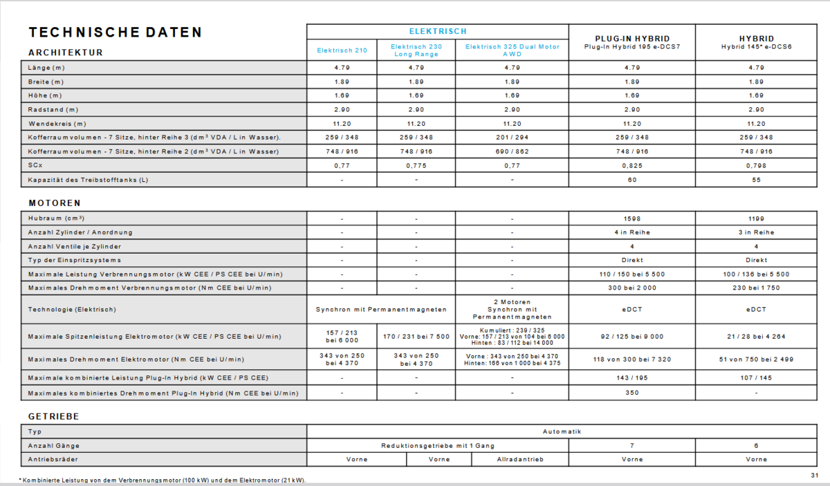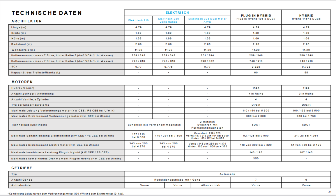- Kombinierter WLTP-Verbrauch: 1,3 l/100 km und 24 kWh/100 km