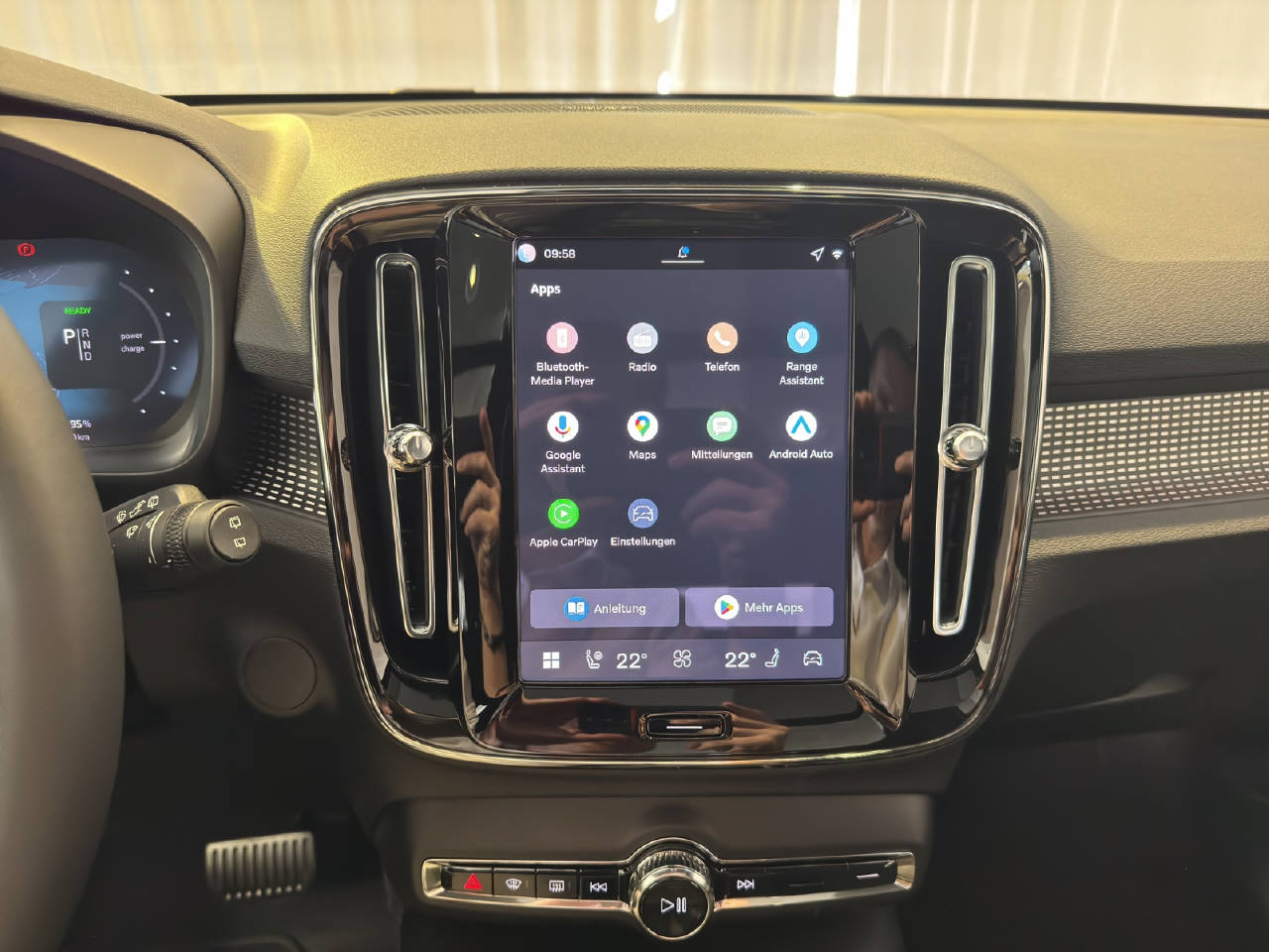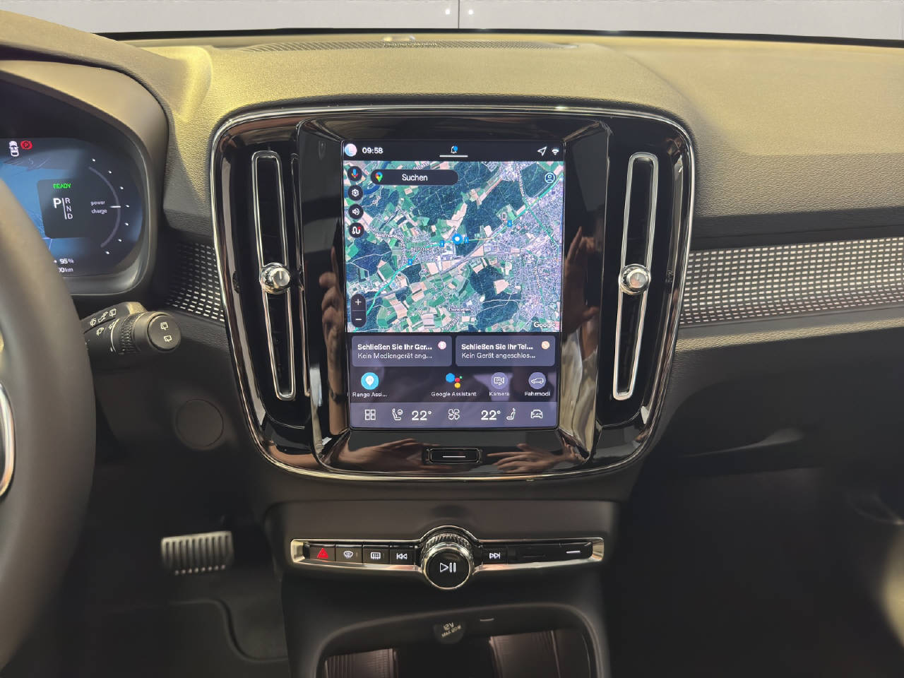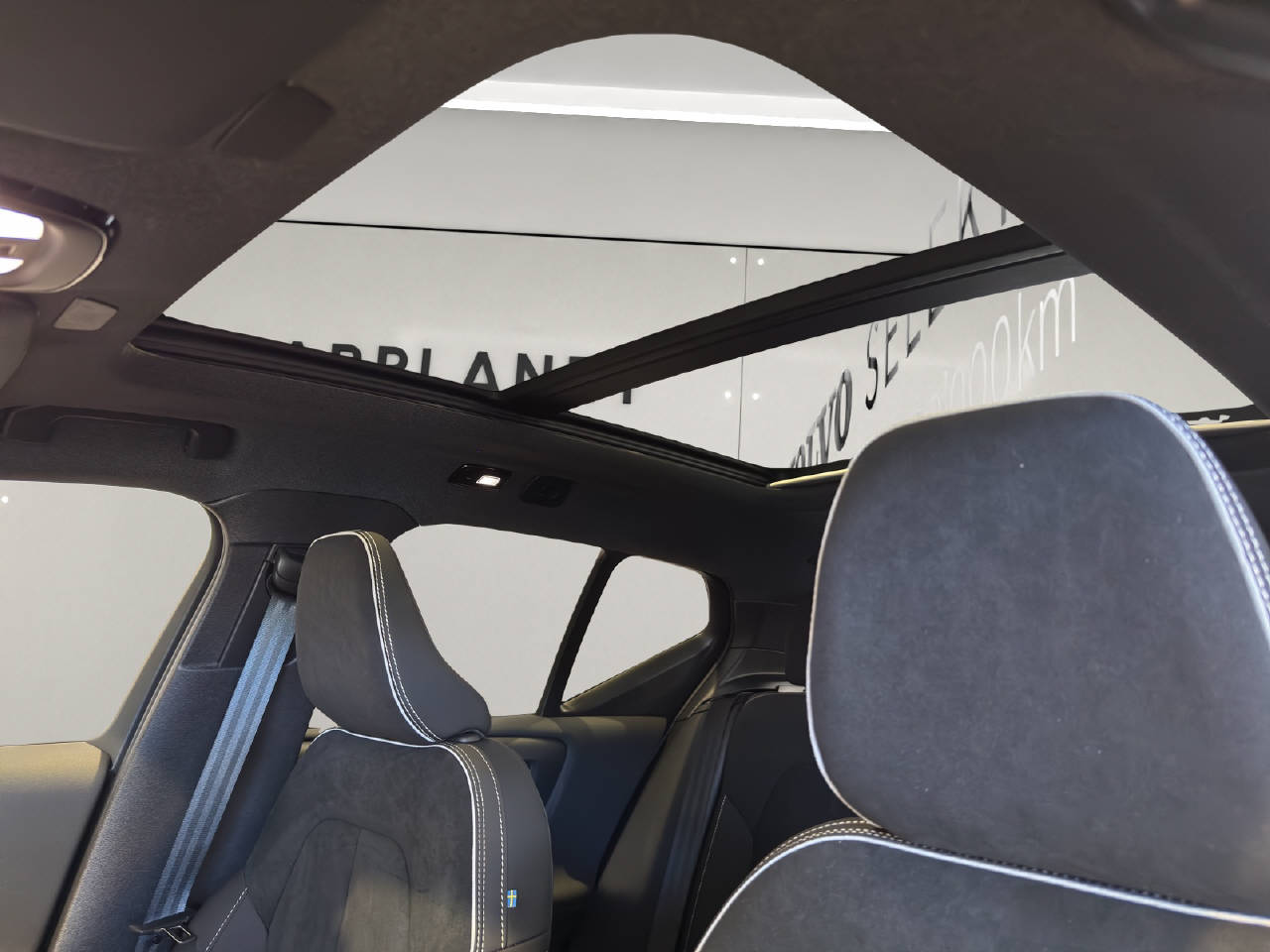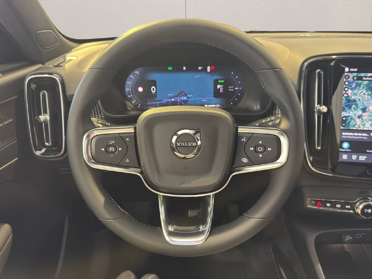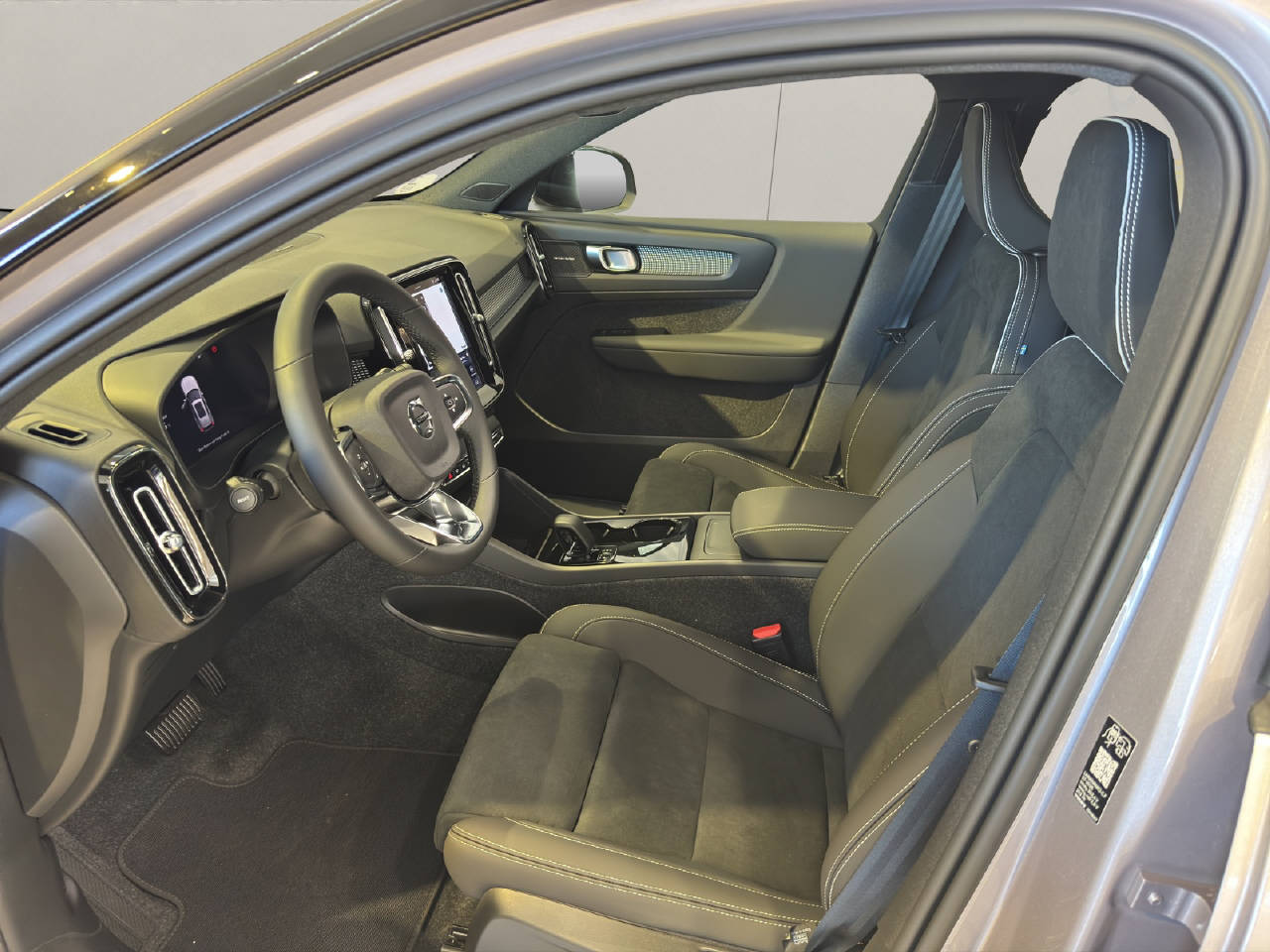 VSP Volvo Swiss Premium, Garantie Batterie 8 Jahre/ 160'000 km, Pack Light, Pack Winter, Pack Innenraumbeleuchtung, Pack Driver Assist, Pack Power Seats, Zentralverriegelung mit Fernbedienung, Keyless-Drive, Elektrische Fensterheber vorne + hinten, Aussenspiegel elektrisch verstellbar und heizbar, Aussenspiegel elektrisch anklappbar, Aussenspiegel und Innenspiegel automatisch abblendend, Regensensor, Panorama-Schiebedach, Heckklappe elektrisch mit Freihandfunktion, Ladekabel, Dach in Kontrastfarbe, Dachreling schwarz, Leichtmetallräder 19" 5-Speichen, Automatische Parkbremse, Servolenkung geschwindigkeitsabhängig, Airbag Fahrer und Beifahrerseite, Deaktivierung Beifahrerairbag, Knieairbag Fahrer, SIPS Seitenairbag Fahrer und Beifahrerseite, SIPS Kopf-/ Schulterairbag, WHIPS Schleudertrauma-Schutzsystem, Türsicherung hinten/ elektrisch, Spurwechselwarnung, DAS Driver Alert/ Assistenzsystem, Aktiver Spurhalteassistent LKAS, Verkehrsschild-Erkennungssystem, Automatische Notbremsung, City Safety inkl. Kreuzungsbremsassistent, Fussgänger-Soundmodul, Querverkehrswarnassistent, Isofix-Kindersitzbefestigung hinten, Adaptive Geschwindigkeitsregelung ACC, Einparkhilfe vorne und hinten, Rückfahrkamera, 360° Kamera, BLIS Blind Spot Information System, Reifendruck-Sensoren TPMS, Berganfahr- Bergabfahrassistent, Volvo Cars App inkl. WiFi Hotspot, LED Tagfahrlicht, Pixel LED-Scheinwerfer, LED-Nebelscheinwerfer, ABS und EBD Elektr. Bremskraftverteilung, ESC Fahrdynamikregelung, Zwei Zonen-Klimaautomatik, Antibeschlagssensor, Standheizung mit Timer, Wärmepumpe, Lenkradheizung, Sportlenkrad, Multifunktionslenkrad, Dachhimmel Charcoal, Vinyl/ Microtec Textilpolster, Vordersitze höhenverstellbar, Sitzheizung vorne, Rücksitze umklappbar 60/40, Elektr. Fahrersitz/ Memory für Fahrersitz und Aussenspiegel, Beifahrersitz elektrisch verstellbar, Lendenwirbelstützen elektr. für Vordersitze, Beinauflagen einstellbar, Durchladesystem, Kopfstützen hinten elektrisch umklappbar, Mittelarmlehne hinten/ 2 Getränkehalter, Mittelarmlehne vorne mit Staufach, Textilfussmatten, Digitale Instrumentierung, Hifi Lautsprechersystem harman/kardon, Infotainmentsystem Android, 2 USB-C Anschlüsse, Apple Car Play/ Android Auto, Wireless Charging für mobile Geräte, Details siehe gültige Preisliste des Importeurs, Keine Gewähr auf die Angaben der Serienausstattungen, exkl. schwenkbare Anhängerkupplung CHF 1'940.-, exkl. Winterkomplettradsatz 19 Zoll CHF 3'471.-