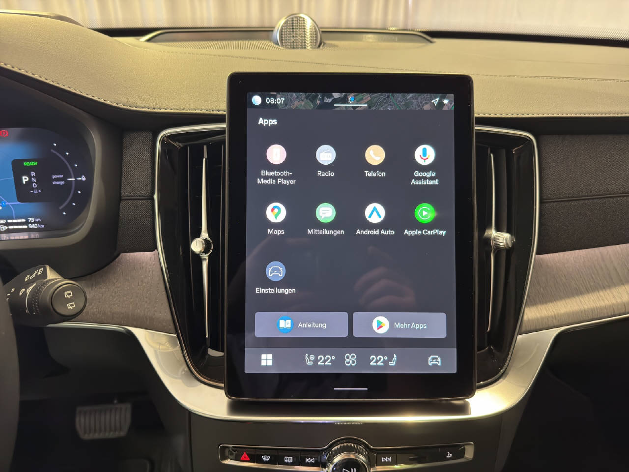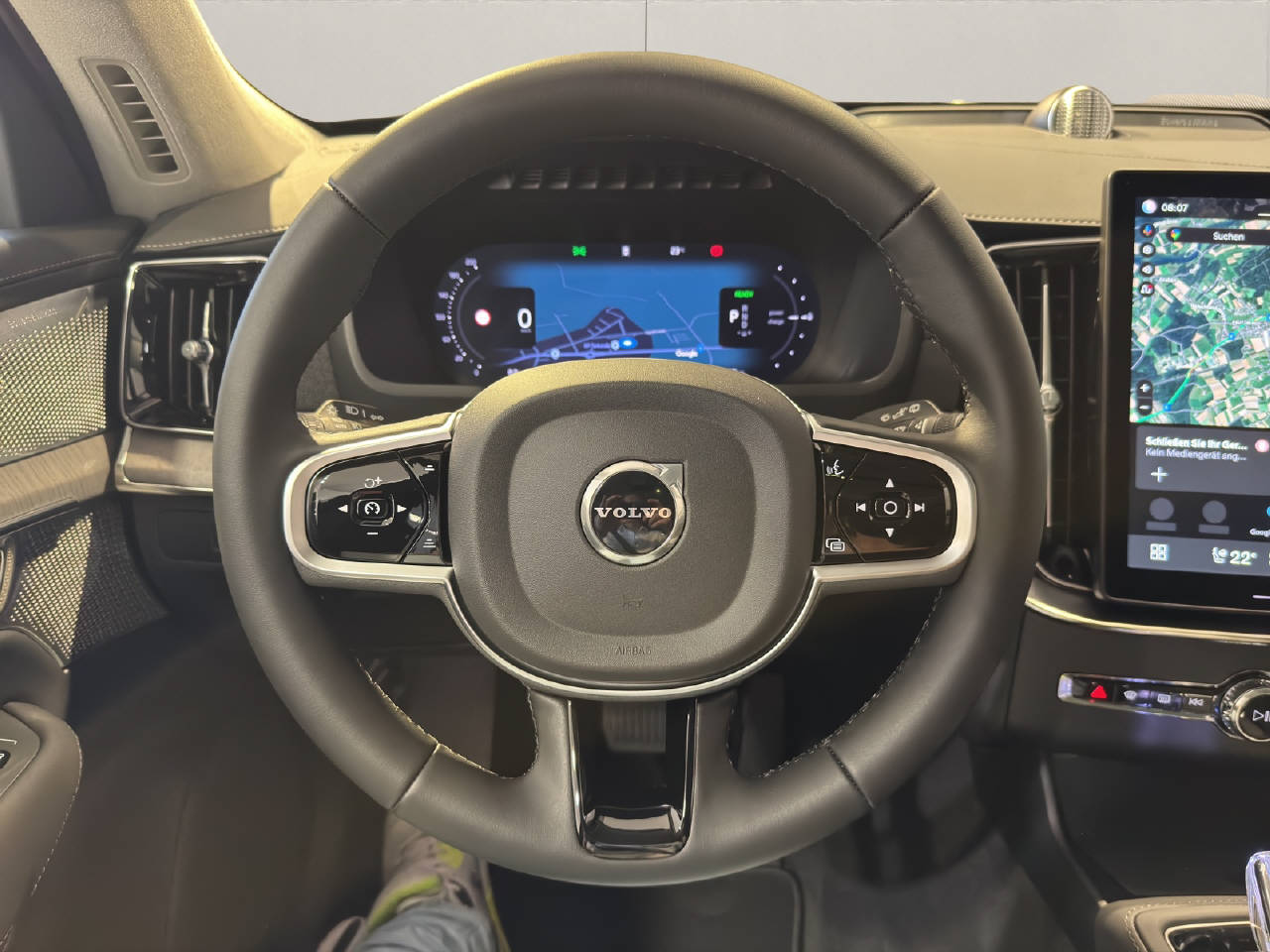 VSP Volvo Swiss Premium, Pack Digital Service, Pack Premium, Pack Winter, Zentralverriegelung mit Fernbedienung, Keyless-Drive, Start + Stopp Funktion, Elektrische Fensterheber vorne + hinten, Aussenspiegel elektrisch verstellbar und heizbar, Aussenspiegel elektrisch anklappbar, Regen- und Lichtsensor, Drive-Mode, Panorama-Schiebedach, Heckklappe automatisches öffnen/ schliessen, Ladekabel, Dachreling, Leichtmetallräder 21" 5-Dreifach-Speichen, Airbag Fahrer und Beifahrerseite, Knieairbag Fahrer, SIPS Seitenairbag Fahrer und Beifahrerseite, SIPS Kopf-/ Schulterairbag, WHIPS Schleudertrauma-Schutzsystem, Elektrische Kindersicherung, Fernlichtassistent, Spurwechselwarnung, DAS Driver Alert/ Assistenzsystem, Spurhalteassistent LDW, Verkehrsschild-Erkennungssystem, Automatische Notbremsung, City Safety inkl. Kreuzungsbremsassistent, Fussgänger-Soundmodul, Isofix-Kindersitzbefestigung, Adaptive Geschwindigkeitsregelung ACC, HDC Hill Descent Assist/ Bergabfahrassistent, Einparkhilfe vorne und hinten, Rückfahrkamera, 360° Kamera, BLIS Blind Spot Information System, Reifendruck-Sensoren TPMS, LED Tagfahrlicht, Matrix LED-Scheinwerfer, Bremsassistent EBA, ABS und EBD Elektr. Bremskraftverteilung, EDS Elektronische Differentialsperre, ESC Fahrdynamikregelung, Vier Zonen-Klimaautomatik, Standheizung mit Timer, Multifunktion für Lenkrad, Lenkradheizung, Armaturenbrett in Lederoptik, Beifahrersitz mit Memory, Sitzheizung vorne, Sitzheizung Aussensitze hinten, Rücksitze geteilt umklappbar 40/20/40, Elektr. Sitze vorn mit Memory für Fahrer und Aussenspiegel, Beinauflagen und Lendenwirbelstütze elektrisch einstellbar, Lenkrad verstellbar, Innen- und Aussenspiegel automatisch abblendbar, Erweitertes Luftqualitätssystem, Sonnenschutzrollo für Seitenfenster hinten, Mittelarmlehne h mit Getränkehalter/ Staufach, Textilfussmatten, Gepäckraum-Trennnetz, Laderaumrollo, DAB+ Digital Audio Broadcast, Hifi Lautsprechersystem harman/kardon, Bluetooth Freisprecheinrichtung, 2 USB-C Anschlüsse, Head-Up Display, Apple Car Play/ Android Auto, Wireless Charging für mobile Geräte, Details siehe gültige Preisliste des Importeurs, Keine Gewähr auf die Angaben der Serienausstattungen, exkl. schwenkbare Anhängerkupplung CHF 1'960.-, exkl. Winterräder 22" CHF 5'046.-