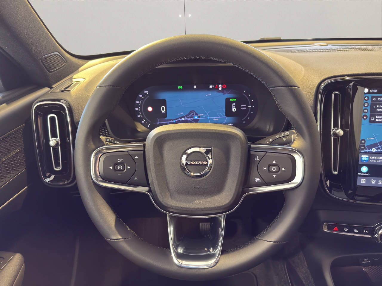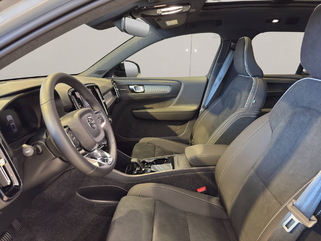 VSP Volvo Swiss Premium, Garantie Batterie 8 Jahre/ 160'000 km, Pack Light, Pack Winter, Pack Innenraumbeleuchtung, Pack Driver Assist, Pack Power Seats, Zentralverriegelung mit Fernbedienung, Keyless-Drive, Elektrische Fensterheber vorne + hinten, Aussenspiegel elektrisch verstellbar und heizbar, Aussenspiegel elektrisch anklappbar, Aussenspiegel und Innenspiegel automatisch abblendend, Regensensor, Panorama-Schiebedach, Heckklappe elektrisch mit Freihandfunktion, Ladekabel, Dach in Kontrastfarbe, Dachreling schwarz, Leichtmetallräder 19" 5-Speichen, Automatische Parkbremse, Servolenkung geschwindigkeitsabhängig, Airbag Fahrer und Beifahrerseite, Deaktivierung Beifahrerairbag, Knieairbag Fahrer, SIPS Seitenairbag Fahrer und Beifahrerseite, SIPS Kopf-/ Schulterairbag, WHIPS Schleudertrauma-Schutzsystem, Türsicherung hinten/ elektrisch, Spurwechselwarnung, DAS Driver Alert/ Assistenzsystem, Aktiver Spurhalteassistent LKAS, Verkehrsschild-Erkennungssystem, Automatische Notbremsung, City Safety inkl. Kreuzungsbremsassistent, Fussgänger-Soundmodul, Querverkehrswarnassistent, Isofix-Kindersitzbefestigung hinten, Adaptive Geschwindigkeitsregelung ACC, Einparkhilfe vorne und hinten, Rückfahrkamera, 360° Kamera, BLIS Blind Spot Information System, Reifendruck-Sensoren TPMS, Berganfahr- Bergabfahrassistent, Volvo Cars App inkl. WiFi Hotspot, LED Tagfahrlicht, Pixel LED-Scheinwerfer, LED-Nebelscheinwerfer, ABS und EBD Elektr. Bremskraftverteilung, ESC Fahrdynamikregelung, Zwei Zonen-Klimaautomatik, Antibeschlagssensor, Standheizung mit Timer, Wärmepumpe, Lenkradheizung, Sportlenkrad, Multifunktionslenkrad, Dachhimmel Charcoal, Vinyl/ Microtec Textilpolster, Vordersitze höhenverstellbar, Sitzheizung vorne, Rücksitze umklappbar 60/40, Elektr. Fahrersitz/ Memory für Fahrersitz und Aussenspiegel, Beifahrersitz elektrisch verstellbar, Lendenwirbelstützen elektr. für Vordersitze, Beinauflagen einstellbar, Durchladesystem, Kopfstützen hinten elektrisch umklappbar, Mittelarmlehne hinten/ 2 Getränkehalter, Mittelarmlehne vorne mit Staufach, Textilfussmatten, Digitale Instrumentierung, Hifi Lautsprechersystem harman/kardon, Infotainmentsystem Android, 2 USB-C Anschlüsse, Apple Car Play/ Android Auto, Wireless Charging für mobile Geräte, Details siehe gültige Preisliste des Importeurs, Keine Gewähr auf die Angaben der Serienausstattungen, exkl. schwenkbare Anhängerkupplung CHF 1'940.-, exkl. Winterräder 19 Zoll CHF 3'471.-